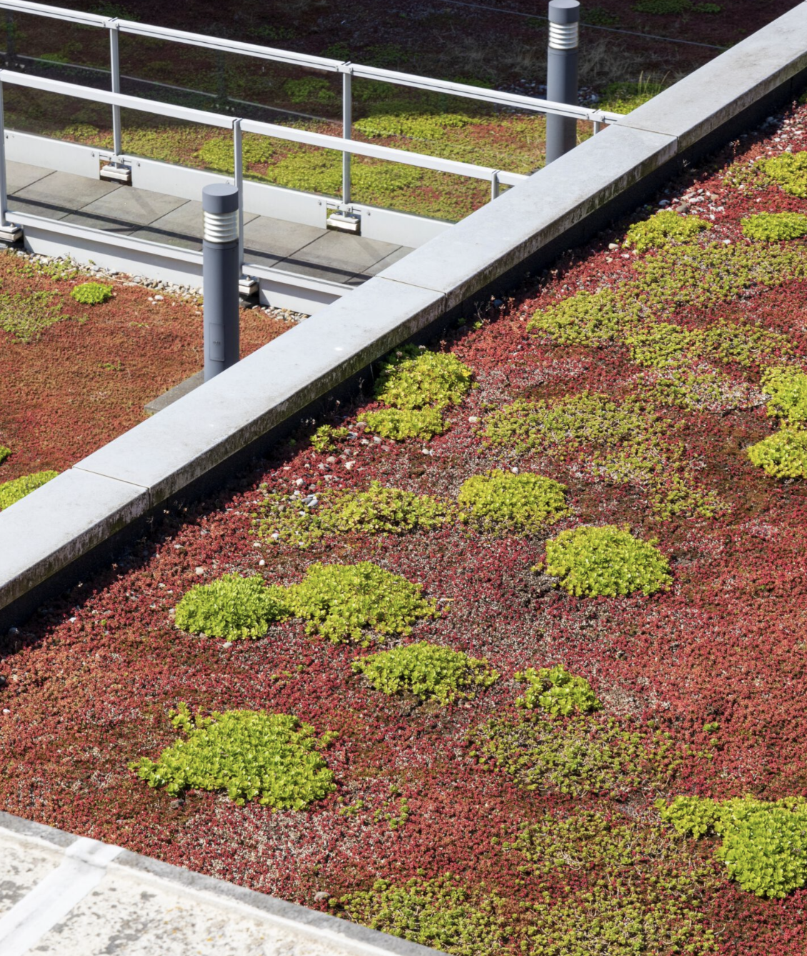 Flachdächer bieten wertvolle zusätzliche Nutzfläche. Dachbegrünungen schaffen Lebensraum für Pflanzen und Tiere, verbessern das Mikroklima, schützen das Dach vor Witterung und verlängern seine Lebensdauer. Gleichzeitig wirken Gründächer als natürliche Regenwasserzisterne und entlasten die Kanalisation.